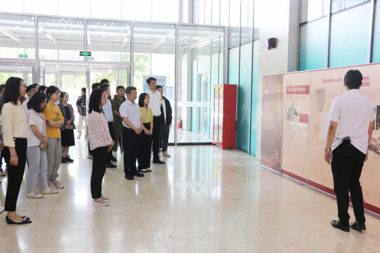 为深入开展学习贯彻习近平新时代中国特色社会主义思想主题教育,牢牢把握“学思想、强党性、重实践、建新功”的总要求,充分发挥基层党组织的战斗堡垒作用,5月22日上午,学生工作部党支部与明德书院学生党支部在良乡校区体育馆联合开展专题党日活动,共同参观“崇尚英雄 争做先锋”主题展览,并邀请平西抗战纪念馆讲解员吕明鑫为全体党员进行讲解学习。