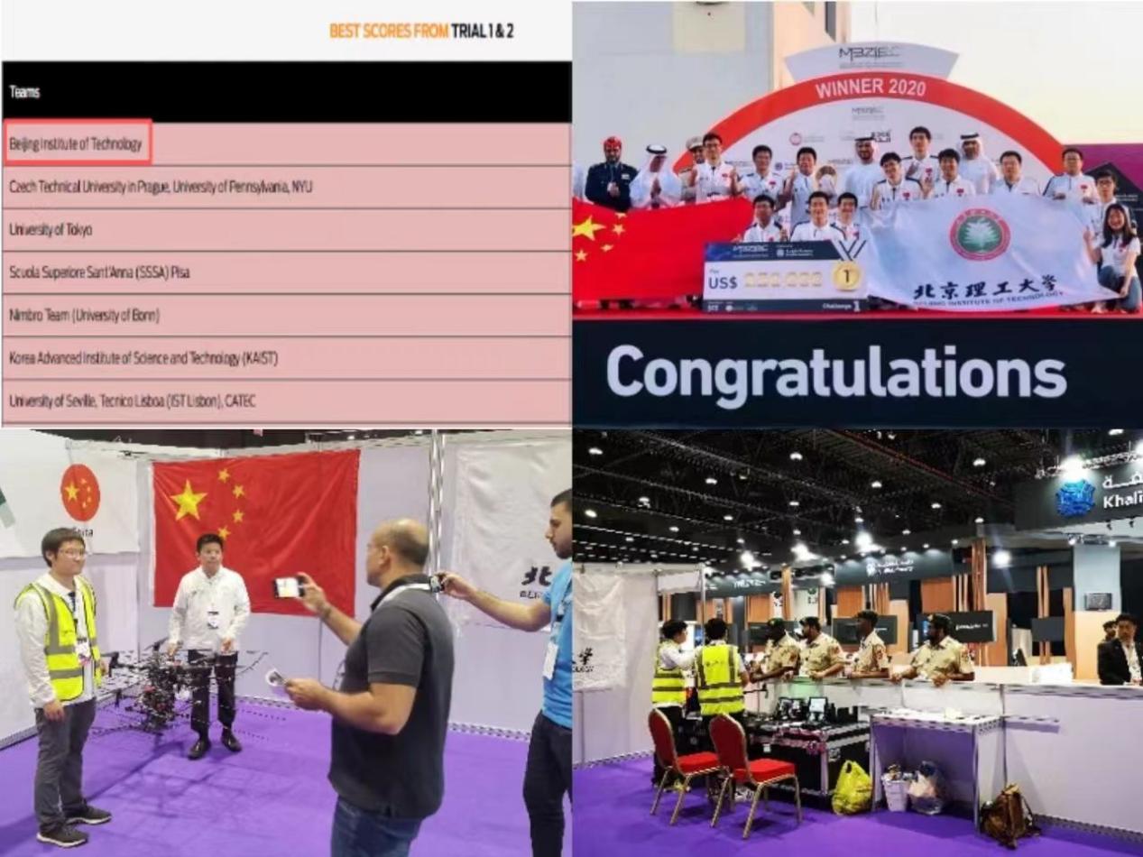 在林德福老师和宋韬老师的指导下,我依托实验室组建的“飞鹰”科技创新中心(飞鹰队),将所学专业知识应用到了“中航工业杯”、2020年MBZIRC竞赛中。其中MBZIRC2020比赛科目要求多无人系统自主协作完成对空中入侵无人机和地面多威胁点的处置,赛事对城市复杂环境小目标的快速识别和精准拦截控制技术提出严苛考验。我负责对目标精准拦截控制算法的设计。在团队集中攻关一整年后,我们在国际赛场上以唯一满分的成绩战胜宾夕法尼亚大学、卡耐基梅隆大学等顶尖科研强校,获得全球冠军,也赢得了各国对中国队伍的关注和认可。