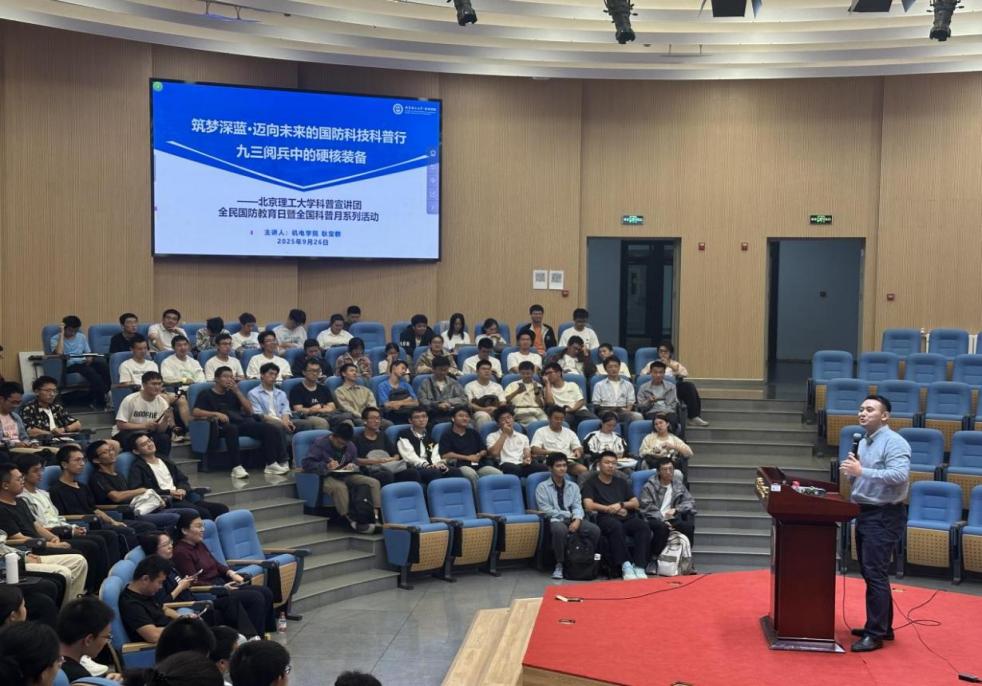 9月26日,党委武装部和机电学院联合举办的示范宣讲活动在良乡校区圆形报告厅顺利开展。机电学院团委书记耿宝群以“筑梦深蓝·迈向未来的国防科技科普行”为主题,为同学们介绍了九三阅兵中的硬核装备,解读“大国重器”背后的科技力量。