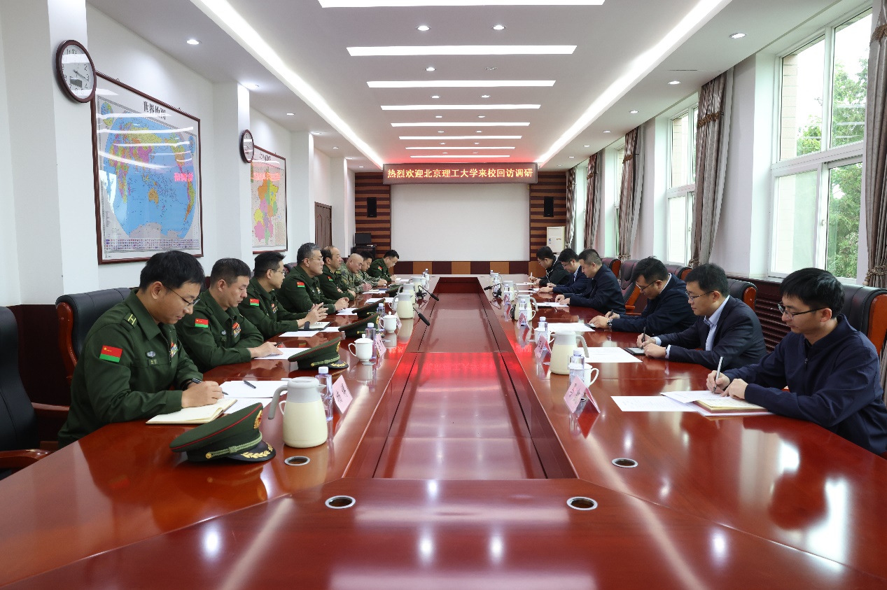 李劢代表航天工程大学某部对北理工一行的到来表示热烈欢迎。他表示,两校合作过程中,航天工程大学某部师生受益良多,站在新的历史起点上,期望两校进一步加强合作,在新时代现代化教学以及新形势下的基础训练方面展开更加深广的探究。程忠表示,未来将继续支持保障北理工打造“特色”军训,并希望双方在教育教学改革、师资队伍建设、科技创新等方面深化合作、共同发展。