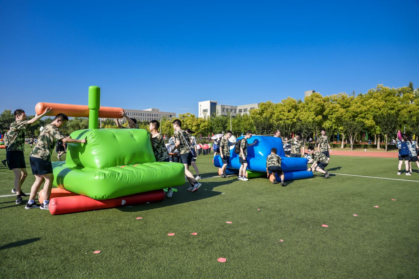 活动现场设置“德、智、体、美、劳”五个挑战区,包括“重走长征路”“有氧鼓”“超级坦克”等15项趣味挑战。线上挑战区设置了“一穿到底”“BIT造型”等12项特色活动。