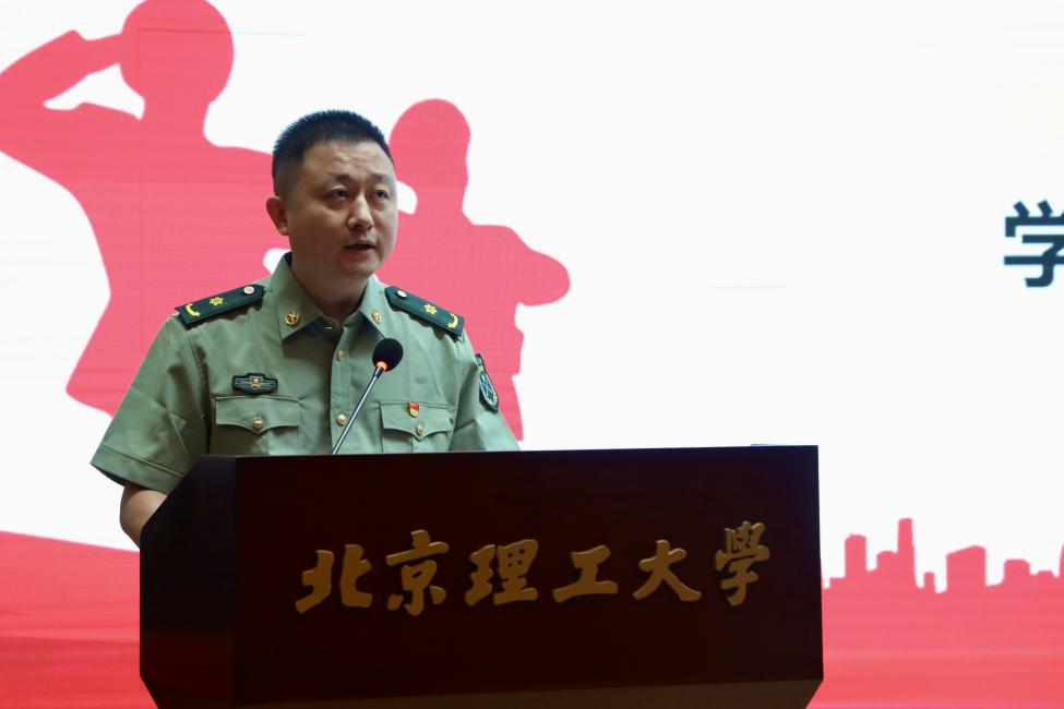 杨帆代表校党委讲话。他首先向全体带队干部致以诚挚的问候。他明确指出:要从强国必先强军、军强才能国安,传承北理工延安根、铸牢新时代军工魂,立好理想信念压舱石、讲好学生开篇第一课等三个方面充分认识军训的重要意义。他强调,全体带队干部一定要从以下四个方面作出更大努力。一是提高政治站位、深化思想认识,要找准职能定位,把深刻认识转化为积极行动;二是强化思想引领、践行立德树人,要把落实思想政治教育、抓好国防教育和贯彻素质教育融为一体;三是认真履职尽责、强化责任担当,要勇于担责,迎难而上,时刻以高标准要求自己;四是要强化人文关怀、筑牢安全底线,要关心关注同学们各类情况,及时发现并解决问题,一切“以学生为中心”,扎实做好双领人才培养工作。