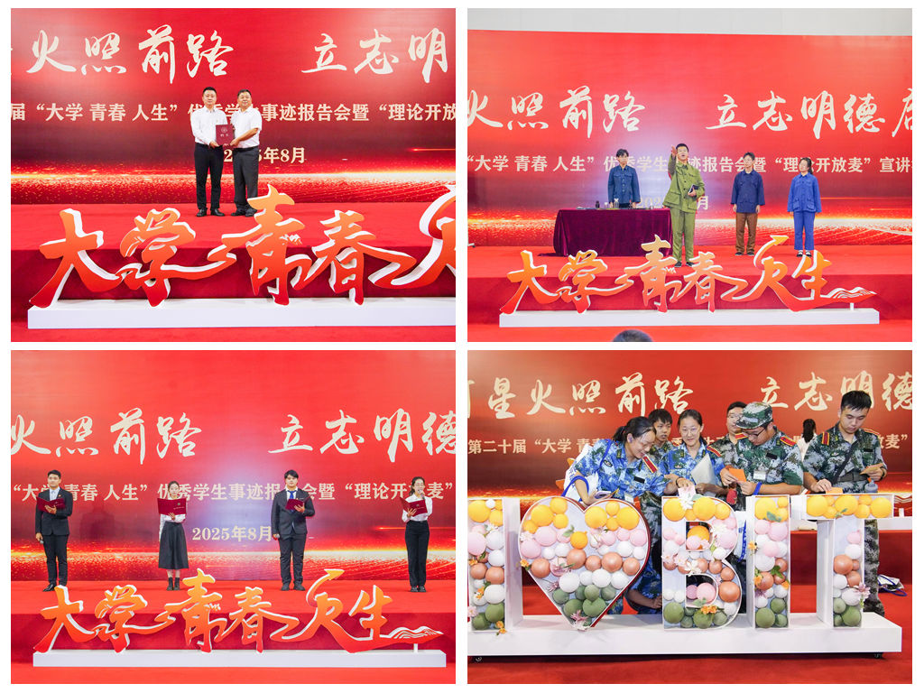 “大学 青春 人生"优秀学生事迹报告会是德育答辩的重要环节,自2006年举办以来,至今已举办20届。今年,学校以中国人民抗日战争暨世界反法西斯战争胜利80周年、建校85周年为契机,不断创新讲述形式,不仅邀请了在学业创业、军工报国、志愿奉献、自强励志等领域取得突出成绩的优秀学生讲述奋斗故事,还融入了“理论开放麦“宣讲环节,以青年喜闻乐见的方式传播党的创新理论,引导新一代北理工人把党的光辉历史、学校的红色基因一代代传承下去。